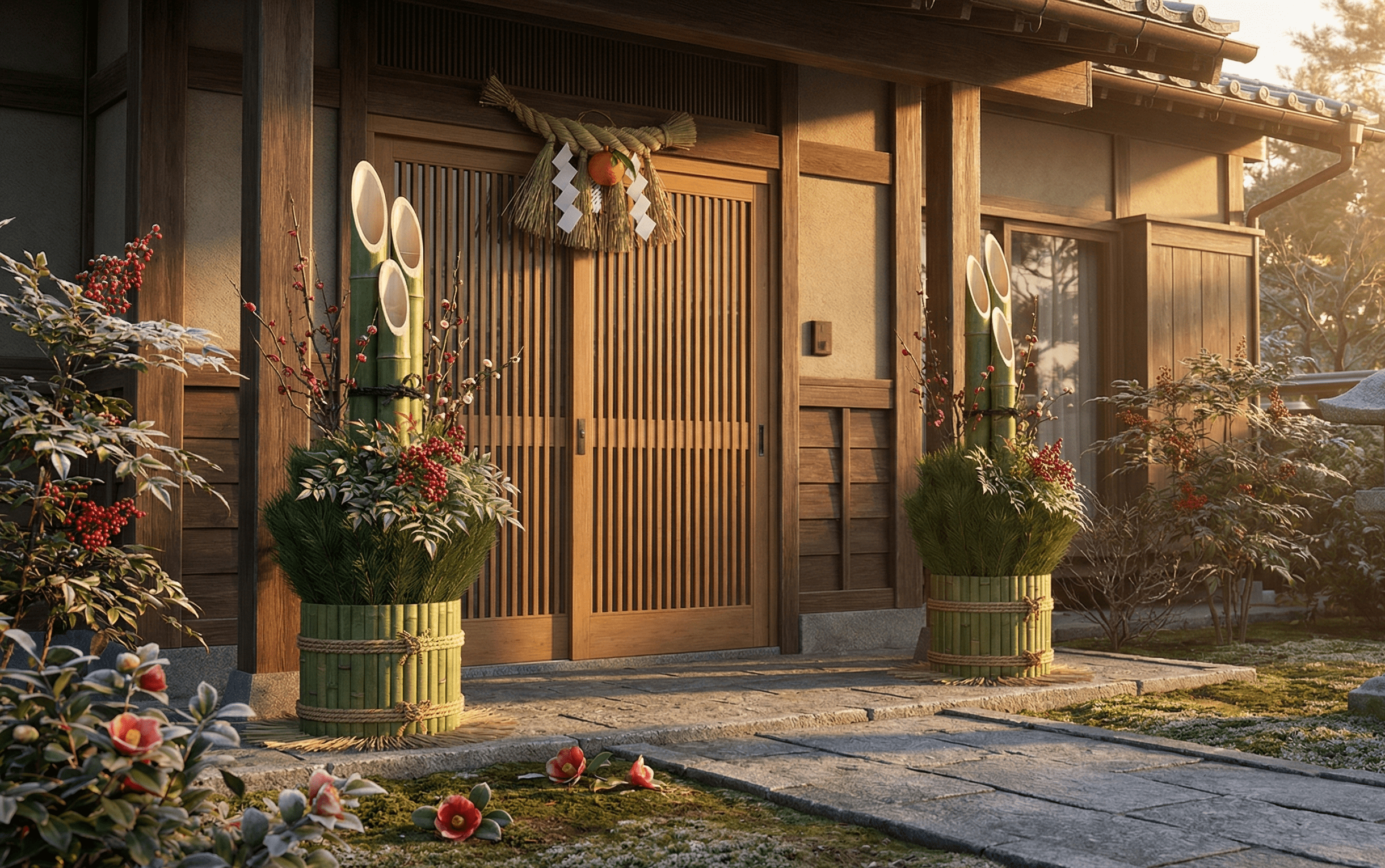 - 門松(かどまつ): 歳神様が迷わず家に来るための「目印」です。冬でも青々とした松は、不老長寿の象徴でもあります。